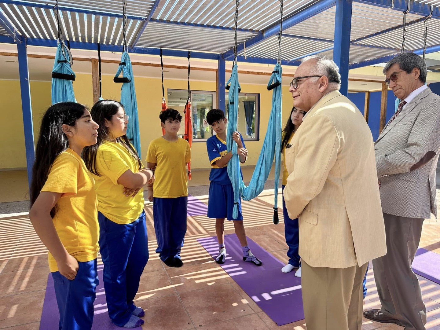 Por su parte, la estudiante Isabella González de sexto básico practica aeroyoga desde hace casi 2 años, relatando que le entrega disciplina y relajación. De los beneficios afirma que “hacemos aeroyoga y las posturas que nos enseña la profe Pili es terapia. Nos sentimos relajados y tenemos confianza con la tela”.