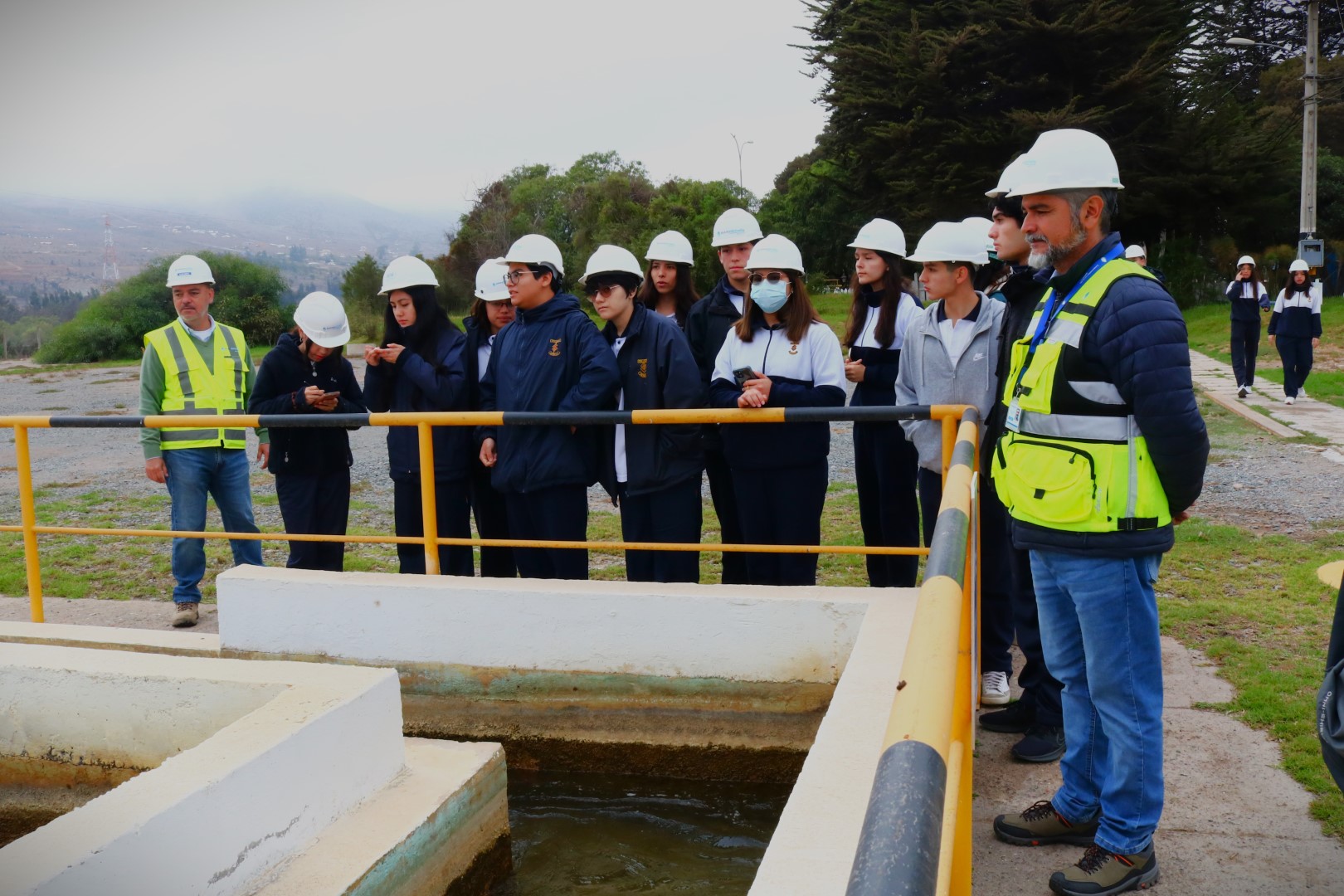 Junto a sus profesores guías de Biología y Ciencias, un grupo de estudiantes de cuarto medio del Colegio Serena, recorrieron la planta de producción de Aguas del Valle. El propósito de la visita es adquirir conocimientos sobre la importancia del recurso hídrico e interiorizarse sobre el proceso que se realiza en el lugar.